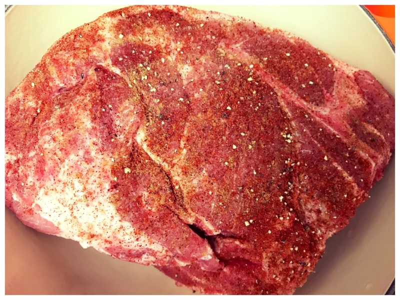 Step 3 - Place pork in Dutch Oven and cover with lid. Place the Dutch Oven in the preheated oven in the center of the rack. Roast in the oven for 4 hours or until pork is very tender.